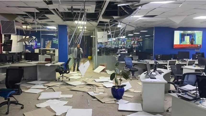 Pictures show damage to Kurdistan 24 office in Erbil after missile attack nearby. pic.twitter.com/v7fyKdHh5J