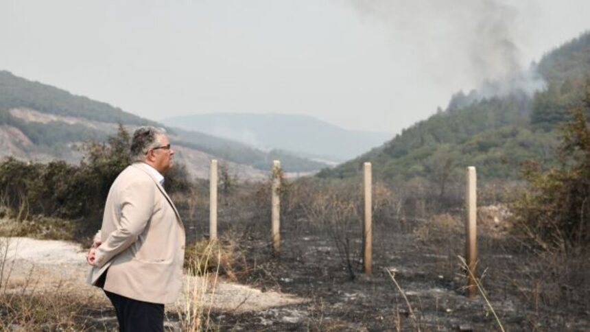 Τεράστιες ευθύνες καταλόγισε στην κυβέρνηση για τις πυρκαγιές ο γενικός γραμματέας της Κεντρικής Επιτροπής του ΚΚΕ Δημήτρης Κουτσούμπας, ο οποίος επισκέφθηκε το πρωί τον Έβρο και ενημερώθηκε σε συνάντηση, στο Νομαρχείο της Αλεξανδρούπολης, με τον περιφερειάρχη Α.Μ.Θ. Χρήστο Μέτιο, παρουσία και του αντιπεριφερειάρχη Δημήτρη Πέτροβιτς και του εντεταλμένου συμβούλου Τουρισμού Α.Μ.Θ. Θανάση Τσώνη.