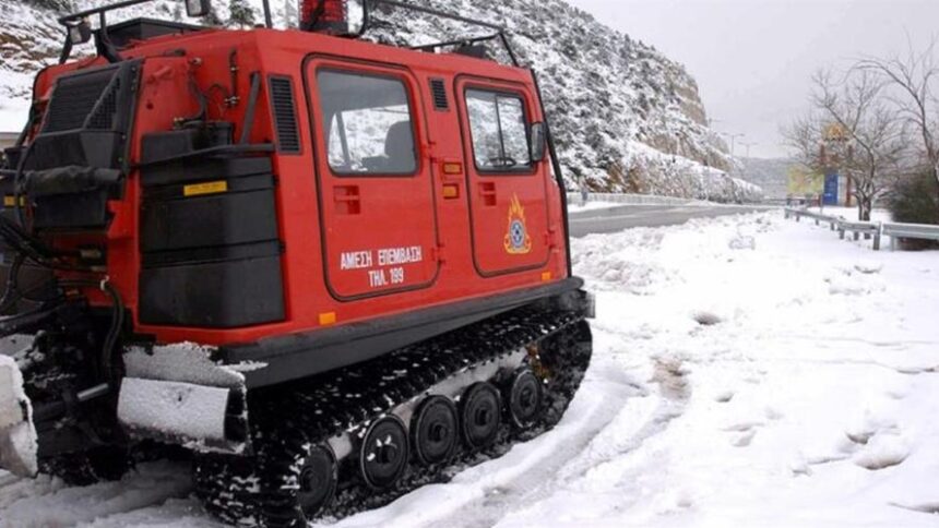 Ορειβατική ομάδα οκτώ ανδρών της ΕΜΑΚ, με ένα ερπιστριοφόρο και ένα drone, επιχειρεί στη χιονισμένη περιοχή για τον εντοπισμό των κτηνοτρόφων. Οι καιρικές συνθήκες είναι δύσκολες λόγω του χιονιά και η περιοχή είναι δύσβατη.