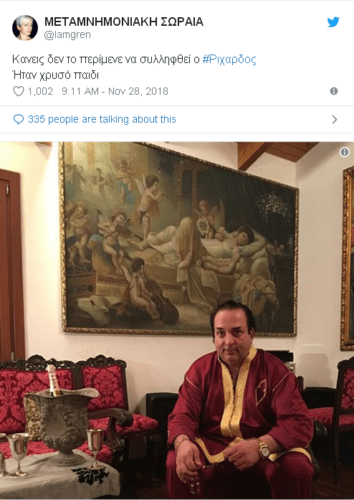 «Φήμες λένε ότι σε υποκατάστημα του βρέθηκαν και κατασχέθηκαν τα χρυσά μήλα των Εσπερίδων», έγραψε ένας χρήστης, ενώ «στην κατοχή του Ριχάρδου βρέθηκε και ο Χρυσός Αιώνας του Περικλή», ανέφερε ένα άλλο μήνυμα.