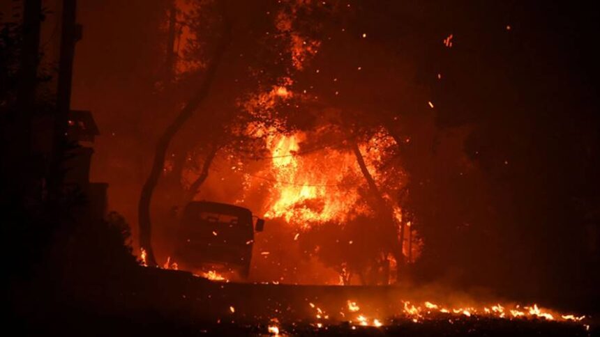 Οι φλόγες είναι από χθες μέσα στους οικισμούς και έχουν κάψει σπίτια, ενώ οι ισχυρές επίγειες δυνάμεις έδωσαν τιτάνια μάχη για να ανακόψουν την πορεία της, αλλά δεν κατάφεραν να την ελέγξουν.