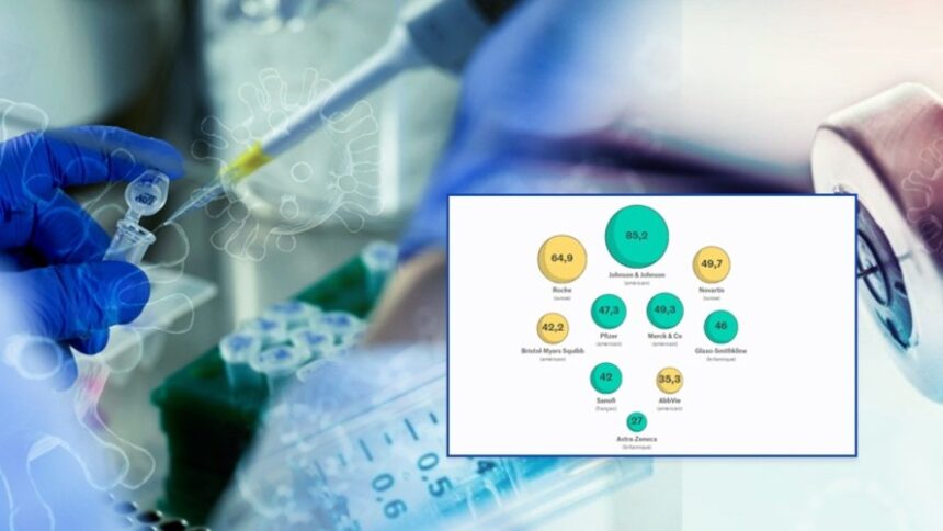 Δείτε τις εταιρείες στο γράφημα που ακολουθεί, καθώς και τον συνολικό τζίρο τους για το 2020 σύμφωνα με τις προβλέψεις. Με έντονο γαλάζιο χρώμα αναφέρονται οι εταιρείες που δραστηριοποιούνται στην παρασκευή του εμβολίου.
