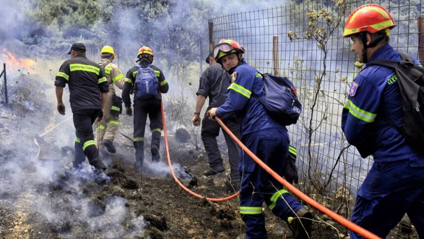 Η φωτιά ξέσπασε σε δασική έκταση στην ορεινή Νάξο κι ενώ στο νησί πνέουν ισχυροί άνεμοι.