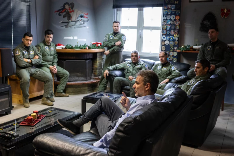 Στη συνέχεια, επισκέφθηκε την 343 Μοίρα, όπου τον υποδέχθηκαν οι πιλότοι και του προσέφεραν αναμνηστικά δώρα. Ο Κυριάκος Μητσοτάκης συνομίλησε με το προσωπικό και αντάλλαξε ευχές ενόψει της νέας χρονιάς, ευχαριστώντας για τις πολύτιμες υπηρεσίες που προσφέρει.