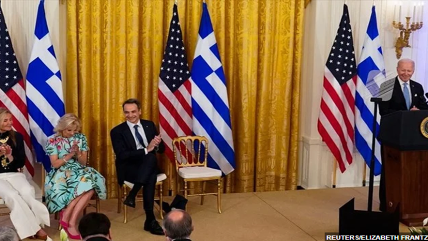 Σε εγκάρδιο κλιμα, και χωρίς να λείπουν τα πολιτικά μηνύματα, εκτυλίχθηκε η δεξίωση που παρέθεσε ο Αμερικανός Πρόεδρος Τζο Μπάιντεν στον Έλληνα πρωθυπουργό Κυριάκο Μητσοτάκη, αμέσως μετά την τετ α τετ συνάντησή τους στον Λευκό Οίκο. Νωρίτερα οι δύο άνδρες είχαν επιβεβαιώσει πως το επίπεδο των σχέσεων ΗΠΑ-Ελλάδας «βρίσκεται στο καλύτερο σημείο», όπως είπε χαρακτηριστικά ο Πρόεδρος των ΗΠΑ, αλλά και στην «σωστή πλευρά της ιστορίας» όπως επεσήμανε ο Κυριάκος Μητσοτάκη.