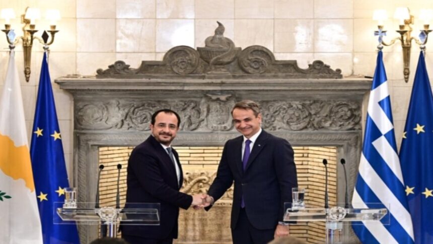 Τα ελληνοτουρκικά, οι εξελίξεις στη Μέση Ανατολή και η ενεργειακή συνεργασία βρέθηκαν στο επίκεντρο των δηλώσεων του πρωθυπουργού Κυριάκου Μητσοτάκη και του προέδρου της Κύπρου Νίκου Χριστοδουλίδη, μετά την 1η Διακυβερνητική Σύνοδο Ελλάδας – Κυπριακής Δημοκρατίας, στο Μέγαρο Μαξίμου.