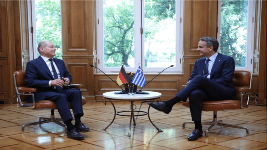 Το ζήτημα των γερμανικών αποζημιώσεων και ιδιαίτερα του κατοχικού δανείου έθεσε κατά την διάρκεια της κοινής συνέντευξης Τύπου με τον καγκελάριο της Γερμανίας Όλαφ Σολτς, ο πρωθυπουργός Κυριάκος Μητσοτάκης.