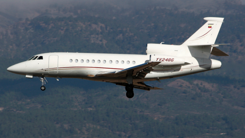 Το συγκεκριμένο αεροσκάφος, ένα Falcon της κρατικής πετρελαϊκής εταιρείας της Βενεζουέλας το οποίο χαρακτηρίζεται ως κυβερνητικό,απογειώθηκε από το Καράκας στις 24 Φεβρουαρίου του 2019, με αρχικό προορισμό το νησί Μαργαρίτα στην Καραϊβική. Την ίδια ημέρα, το πλήρωμα κατάφερε να το προσγειώσει στην Πορτογαλία, παρά την αρχική άρνηση της χώρας. Η άδεια για προσγείωση δόθηκε τελικά όταν ο πιλότος απείλησε ότι το αεροσκάφος θα πέσει, επειδή τελείωναν τα καύσιμα. Δύο ημέρες αργότερα, το αεροσκάφος προσγειώθηκε στη Γενεύη, ενώ αρκετές άλλες ευρωπαϊκές χώρες δεν του επέτρεψαν να προσεγγίσει.