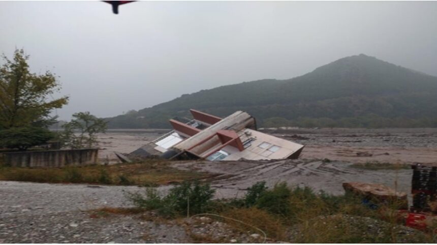 Όπως φαίνεται στις φωτογραφίες ένα ακίνητο που λειτουργούσε σαν γυμναστήριο κατέρρευσε δίπλα στον ποταμό που είχε ανεβάσει τη στάθμη του.
