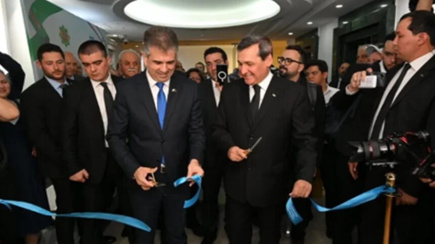 Ο υπουργός Εξωτερικών Eli Cohen στην τελετή εγκαινίων της ισραηλινής πρεσβείας στο Τουρκμενιστάν, τον Απρίλιο. Shlomi Amsalem / GPO
