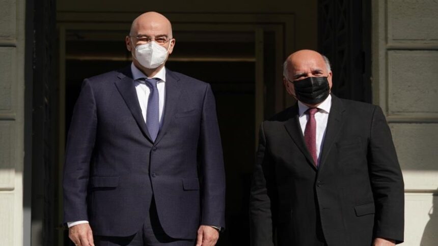 «Στο πλαίσιο των σχέσεων καλής γειτονίας, υποστηρίζουμε ότι οι χώρες πρέπει να αποφεύγουν οποιουδήποτε εκβιασμούς,» υπογράμμισε ο υπουργός Εξωτερικών Νίκος Δένδιας σε κοινές δηλώσεις του με τον υπουργό Εξωτερικών του Ιράκ, Φουάντ Χουσεΐν (Fouad Hussein), ο οποίος βρίσκεται σήμερα στην Αθήνα.