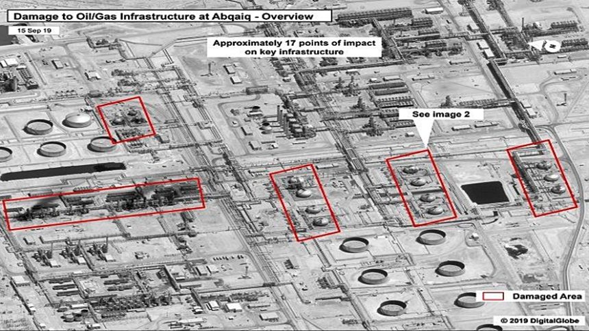 Δορυφορικές φωτογραφίες από τις επιθέσεις εναντίον εγκαταστάσεων αργού πετρελαίου στη Σαουδική Αραβία, έδωσε στη δημοσιότητα η αμερικανική κυβέρνηση, ισχυριζόμενη ότι αποδεικνύουν πως πρόκειται για έργο της Τεχεράνης. Την άποψη αυτή υποστηρίζουν και οι αμερικάνικες μυστικές υπηρεσίες, βάσει των σχετικών στοιχείων που έχουν στην κατοχή τους.