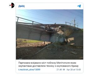 Μελιτόπολη: Γέφυρα, κοντά στο χωριό Γιακιμίβκα, έξω από τη Μελιτόπολη καταστράφηκε ολοσχερώς από βομβαρδισμό.