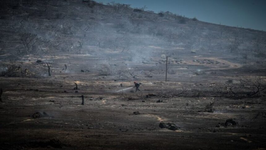 Η πυρκαγιά εκδηλώθηκε στο νότιο κόμβο των Λαβάρων κοντά σε κατοικημένη περιοχή.