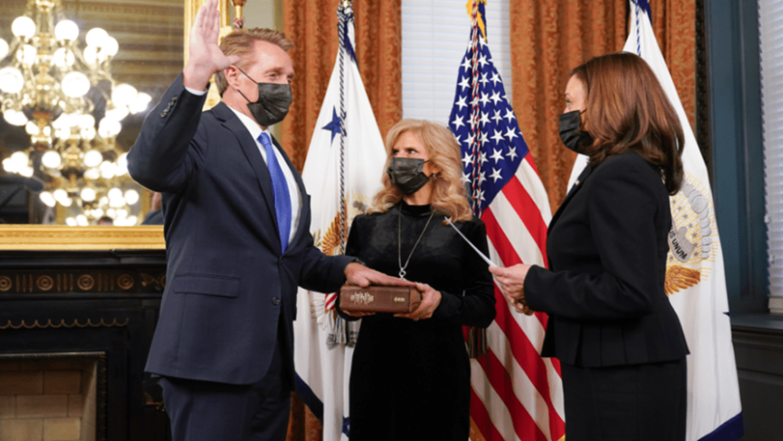 Ορκίστηκε ο νέος Αμερικανός Πρέσβης στην Άγκυρα, Τζεφ Φλέικ, παρουσία της Αμερικανίδας Αντιπροέδρου Καμάλα Χάρις.