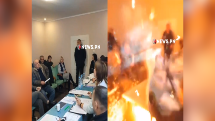 Συγκλονιστικά είναι τα πλάνα από όσα έγιναν σε τοπικό συμβούλιο, στη νοτιοδυτική Ουκρανία, όταν βουλευτής πέταξε τρεις χειροβομβίδες.