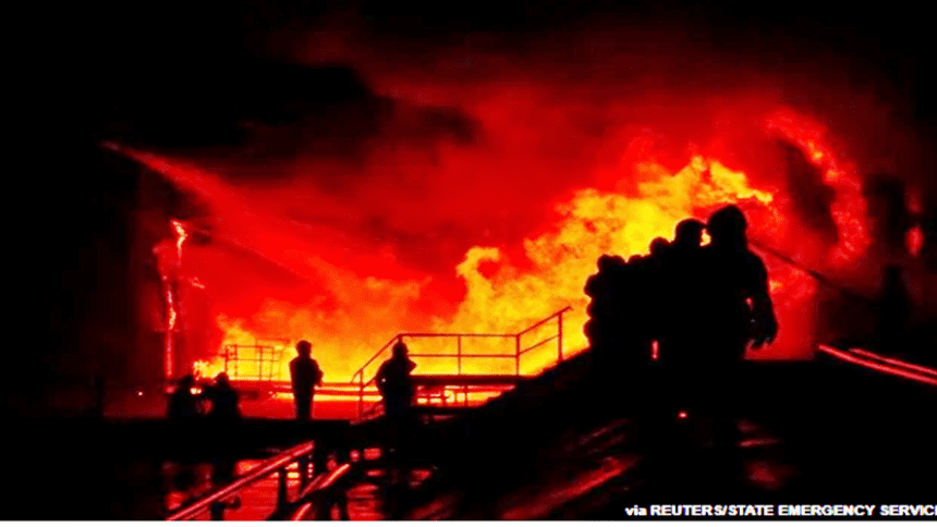 «Ξέσπασε μεγάλη πυρκαγιά, οι διασώστες την περιόρισαν», έγραψε ο Σινεχούμποφ σε ανάρτησή του στο Telegram.