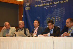 Μοιράστηκε με τους συναδέλφους του τις εμπειρίες του και τις εντυπώσεις του και τόνισε ότι ο πόλεμος επέφερε πολλά δεινά στην Ουκρανία. Επίσης, μίλησε για την έκθεση του με τις φωτογραφίες από την Ουκρανία με τίτλο: «Η Ειρηνική Μαριούπολη των Ελλήνων», η οποία φιλοξενήθηκε στο χώρο του συνεδρίου και εντυπωσίασε τους δημοσιογράφους από 15 Ευρωπαϊκές χώρες. Δεν παρέλειψε να αναφερθεί στην δημιουργία της σχολικής βιβλιοθήκης στο χωριό Σαρτανά της Μαριούπολης, που έγινε με δική του πρωτοβουλία.