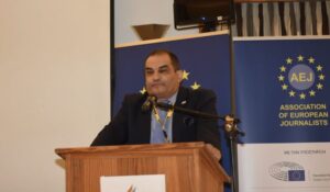 Ο βραβευμένος φωτορεπόρτερ Βασίλειος Κουτρουμάνος και Πρόεδρος της Ένωσης Φωτοειδησεογράφων μίλησε στο Διεθνές Συνέδριο της Ένωσης Ευρωπαίων Δημοσιογράφων που πραγματοποιήθηκε στην Ερέτρια στις 29/10/2022. Η Ένωση Ευρωπαίων Δημοσιογράφων γιόρτασε τα 60 χρόνια του Διεθνούς Τμήματος και τα 40 χρόνια του Ελληνικού Τμήματος. Το θέμα της ομιλίας του αφορούσε την Μαριούπολη της Ουκρανίας όπου έκανε αμέτρητες αποστολές. Αναφέρθηκε στον μακραίωνο Ελληνισμό της περιοχής και τις διώξεις που υπέστησαν οι Έλληνες.