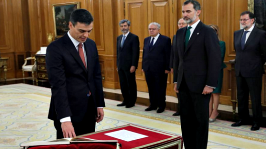 Ο σοσιαλιστής Πέδρο Σάντσεθ ορκίστηκε σήμερα πρωθυπουργός της Ισπανίας, μετά την υπερψήφιση από το κοινοβούλιο της πρότασης μομφής κατά του Μαριάνο Ραχόι και την ανατροπή του συντηρητικού επικεφαλής της κυβέρνησης.