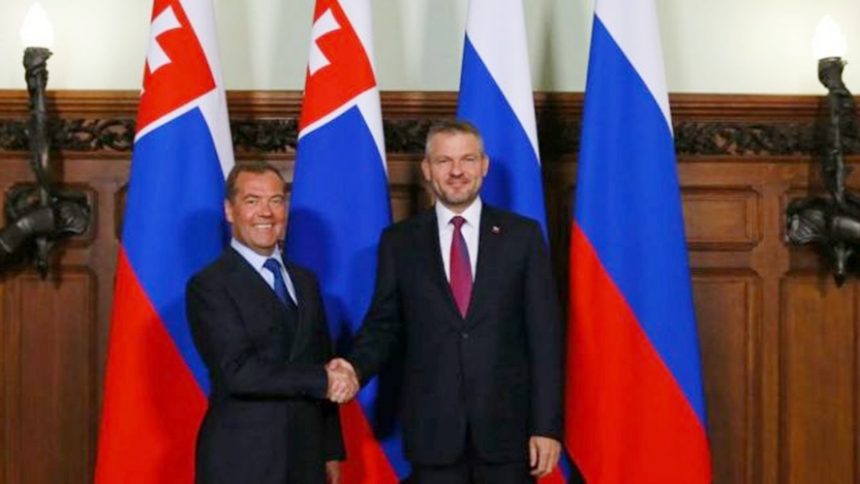 Photo: Από τη συνάντηση στη Μόσχα την προηγούμενη εβδομάδα μεταξύ του Ρώσου πρωθυπουργού, Dmitry Medvedev (αριστ.), και του Σλοβάκου ομολόγου του, Peter Pellegrini.