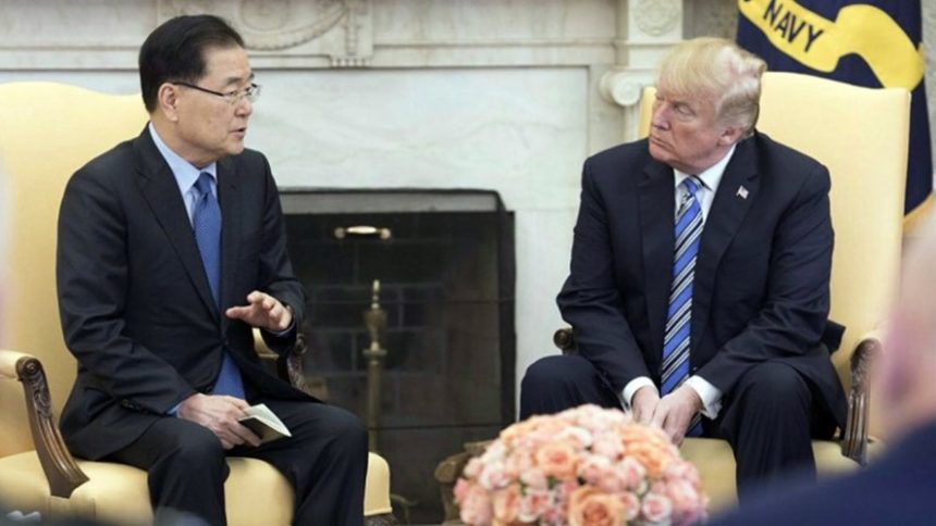 Η κυβέρνηση της Νότιας Κορέας, ανέφερε την Κυριακή, ότι ο Κίμ, είπε στον Πρόεδρο Μούν, ότι θα εγκαταλείψει τα πυρηνικά όπλα του εάν οι Ηνωμένες Πολιτείες συμφωνήσουν, να άρουν επίσημα το εμπόλεμο με τη Βόρεια Κορέα, και δεσμευτούν να μην εισβάλλουν στη χώρα του.