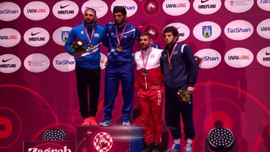 Ο Νταουρέν Κουρουγκλίεβ χάρισε στην Ελλάδα το δεύτερο της μετάλλιο στο ευρωπαϊκό πρωτάθλημα πάλης Ανδρών/Γυναικών, που διεξάγεται στο Ζάγκρεμπ της Κροατίας. Μετά το ασημένιο του Γιώργου Κουγιουμτσίδη, σειρά πήρε το χρυσό του Κουρουγκλίεβ, ο οποίος στον σημερινό (19/4) τελικό των 86κ. ελευθέρας πάλης επικράτησε με 3-1 του Μάιλς Ναζέμ Αμινέ από το Σαν Μαρίνο.