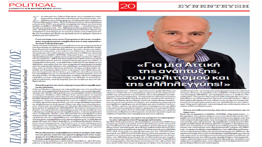 Ο Πάνος Ν. Αβραμόπουλος, Υποψήφιος Περιφερειακός Σύμβουλος Κεντρικού Τομέα Αττικής, με τον Γιάννη Σγουρό παρεχώρησε κεντρική συνέτευξη στο Political.gr.