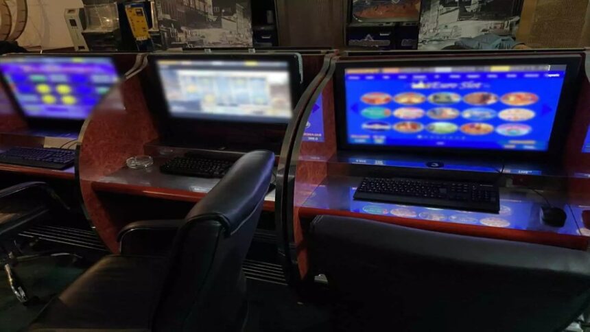 Κατασχέθηκαν οι 32 υπολογιστές, καθώς και 11 τράπουλες, 2 σετ μαρκών και το χρηματικό ποσό των 1.145 ευρώ.
