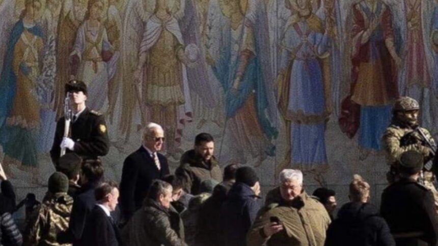 Οι New York Times αναφέρουν ότι ο πρόεδρος των ΗΠΑ Τζο Μπάιντεν έφτασε στο Κίεβο, μετά από μία ώρα διαδρομής με τρένο από τα σύνορα με την Πολωνία. Όπως εξηγεί η αμερικανική εφημερίδα, η επίσκεψη έγινε κρυφά λόγω ανησυχιών για την ασφάλεια του Μπάιντεν. Αμέσως μετά την άφιξή του στο Κίεβο, ο πρόεδρος των ΗΠΑ και ο Ζελένσκι επισκέφθηκαν το μοναστήρι του Αγίου Μιχαήλ, ενώ οι σειρήνες αεροπορικής επιδρομής ηχούσαν σε όλη την πόλη.