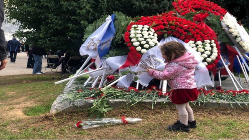 Μεταξύ των ανθρώπων που τίμησαν τη σημερινή επέτειο ήταν και ένα μικρό κοριτσάκι που πήγε για να αφήσει ένα λουλούδι.