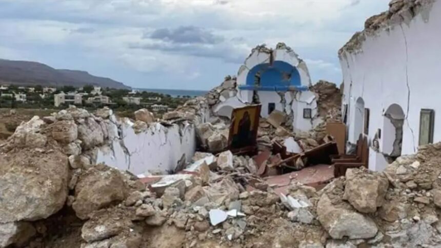 Στο μεταξύ, κατέρρευσε υπό την πίεση των Ρίχτερ το εκκλησάκι του Αγίου Νικολάου, στον Ξηροκαμπο Σητείας. Όπως φαίνεται στις φωτογραφίες, το μικρό εκκλησάκι δεν άντεξε τον ισχυρό σεισμό.