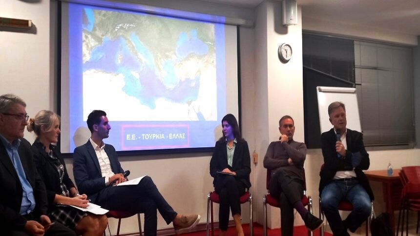 Τέσσερις ομιλητές συζήτησαν για το ενεργειακό παιχνίδι μεταξύ ΕΕ και Ρωσίας, τις σχέσεις μεταξύ δυο παραδοσιακών δυτικών φίλων(ΕΕ-ΗΠΑ), τις σχέσεις μεταξύ ΕΕ και Τουρκίας, αλλά και την επικοινωνιακή τακτική που ακολουθεί η δεύτερη μεταξύ ΕΕ και Ρωσίας ως οιωνεί περιφερειακός παίκτης.
