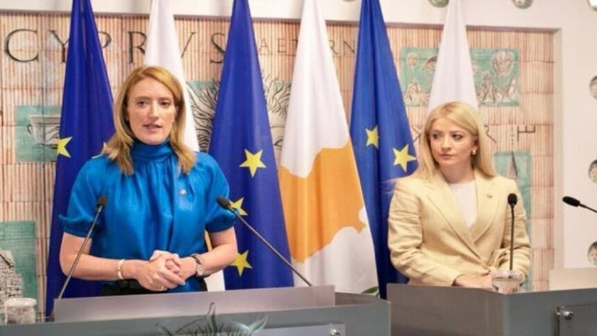 Στις δηλώσεις, που ακολούθησαν μετά την κατ’ ιδίαν συνάντηση, η Πρόεδρος του Ευρωπαϊκού Κοινοβουλίου, Ρομπέρτα Μετσόλα αναφέρθηκε στο Κυπριακό, σημειώνοντας ότι αποτελεί μια ανοικτή πληγή για την Ευρώπη και τόνισε την ανάγκη επανέναρξης διαπραγματεύσεων, κάνοντας ιδιαίτερη αναφορά στην ανάγκη σεβασμού του Διεθνούς Δικαίου και των ψηφισμάτων Ηνωμένων Εθνών.