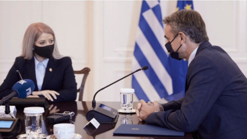 “Θέλω να σας διαβεβαιώσω για ακόμα μία φορά ότι Ελλάδα και Κύπρος παραμένουν απόλυτα συντονισμένες για να απαντήσουν με τρόπο μεθοδικό, οργανωμένο και πάντα συμβατό με το Διεθνές Δίκαιο στις προκλήσεις που αντιμετωπίζουμε στην Ανατολική Μεσόγειο” τόνισε ο πρωθυπουργός Κυριάκος Μητσοτάκης κατά τη συνάντηση του σήμερα με τη νέα πρόεδρο της Βουλής των Αντιπροσώπων της Κυπριακής Δημοκρατίας, Αννίτα Δημητρίου, η οποία πραγματοποιεί επίσκεψη στην Ελλάδα.