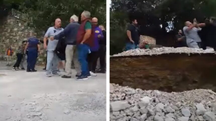 Όλα ξεκίνησαν σήμερα το πρωί στην περιοχή Άλλη Μεριά στον Βόλο όπου κάτοικοι της περιοχής είχαν συγκεντρωθεί, με αφορμή το μπάζωμα του ρέματος
