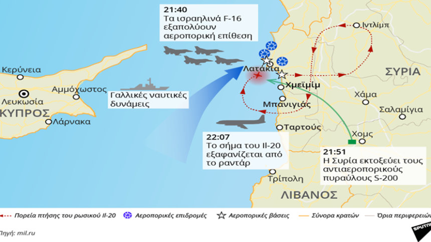 Το ρωσικό αεροσκάφος IL-20 έπεσε στις 17 Σεπτεμβρίου έπειτα από μία σειρά «τραγικών γεγονότων» όπως δήλωσε ο πρόεδρος Πούτιν. Ισραηλινά μαχητικά χρησιμοποίησαν ως ασπίδα το αεροσκάφος με αποτέλεσμα να χτυπηθεί από συριακά πυρά.