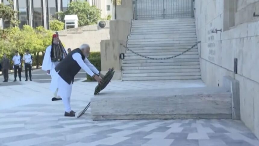 PM Modi lays a wreath at Tomb of Unknown Soldier in Athens: pic.twitter.com/Fqztge39sM