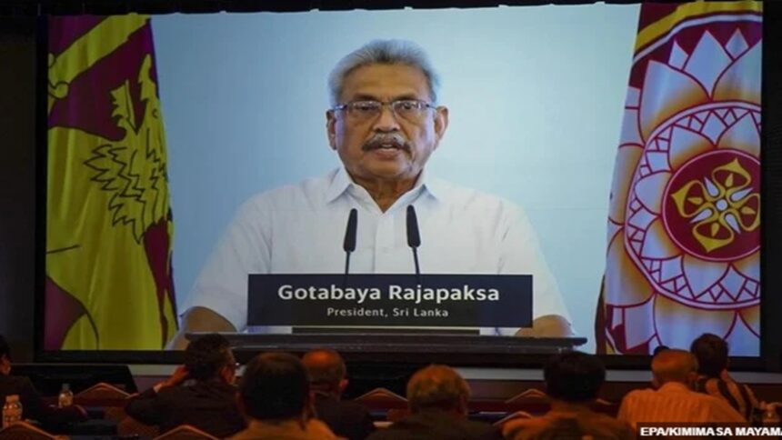 Νωρίτερα σήμερα είχε γίνει γνωστό ότι σχεδίαζε να φύγει με πλοίο, αφού στελέχη της υπηρεσίας μετανάστευσης στο αεροδρόμιο του Κολόμπο φέρονται να τον απώθησαν με ταπεινωτικό τρόπο. Ένα πολεμικό πλοίο είχε ήδη χρησιμοποιηθεί για τη μεταφορά του αρχηγού του κράτους το Σάββατο από το προεδρικό μέγαρο, το οποίο πολιορκούσαν διαδηλωτές, στο λιμάνι του Τρινκομάλε, στο βορειοανατολικό τμήμα της χώρας.