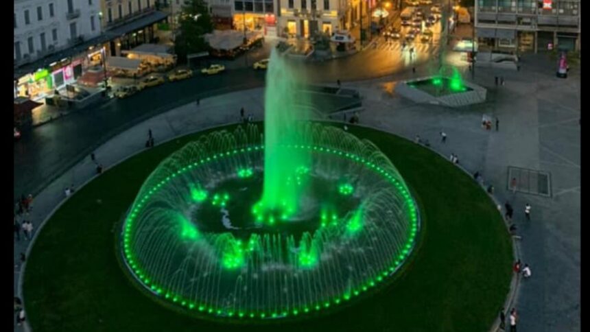 Ο πρώτος πολίτης της Αθήνας, συνόδευσε την ανάρτησή του με μία φωτογραφία απ’ το σιντριβάνι τη πλατείας Ομονοίας, το πιο κεντρικό σημείο της πρωτεύουσας, το οποίο ήταν φωτισμένο με πράσινο φως προς τιμήν του Παναθηναϊκού.