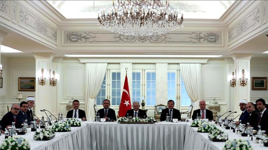 Στην συνάντηση ο κ. Yıldırım ήταν πλαισιωμένος από τους αναπληρωτές πρωθυπουργούς, τον καταγόμενο από την Θράκη Hakan Çavuşoğlu και τον Bekir Bozdağ, στην εντυπωσιακή αίθουσα των συσκέψεων του πρωθυπουργικού μεγάρου.