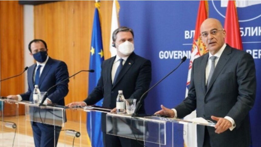 Σε ιδιαίτερα φιλικό και εποικοδομητικό κλίμα πραγματοποιήθηκε στο Βελιγράδι η πρώτη τριμερής συνάντηση των υπουργών Εξωτερικών Σερβίας, Ελλάδας και Κύπρου. Οι υπουργοί Νίκολα Σελάκοβιτς, Νίκος Δένδιας και Νίκος Χριστοδουλίδης εξέτασαν τις προοπτικές ενίσχυσης της πολυμερούς συνεργασίας σε διάφορους τομείς, όπως η περιφερειακή ασφάλεια, η ενέργεια, οι μεταφορές, ο τουρισμός και το μεταναστευτικό. Συμφωνήθηκε η τριμερής αυτή να αποτελέσει μόνιμο σχήμα συνεργασίας που θα συνεδριάζει σε τακτά χρονικά διαστήματα. Η επόμενη συνάντηση θα πραγματοποιηθεί στη Θεσσαλονίκη.