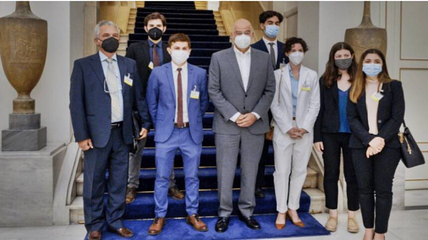 Ο Υπουργός Εξωτερικών, Νίκος Δένδιας συναντήθηκεμε τους βραβευθέντες φοιτητές της Νομικής Σχολής του Δημοκριτείου Πανεπιστημίου Θράκης σε διεθνή διαγωνισμό εικονικής δίκης Διεθνούς Δικαίου. Η ομάδα εκπροσώπησε την Ελλάδα και την Νομική Σχολή του Δημοκρίτειου Πανεπιστημίου Θράκης στο διεθνή διαγωνισμό Εικονικής Δίκης Διεθνούς Δικαίου Τέλντερς 2021 (Telders International Law Moot Court Competition), κατέκτησε την 1η θέση και τιμήθηκε με το βραβείο Max Huber.