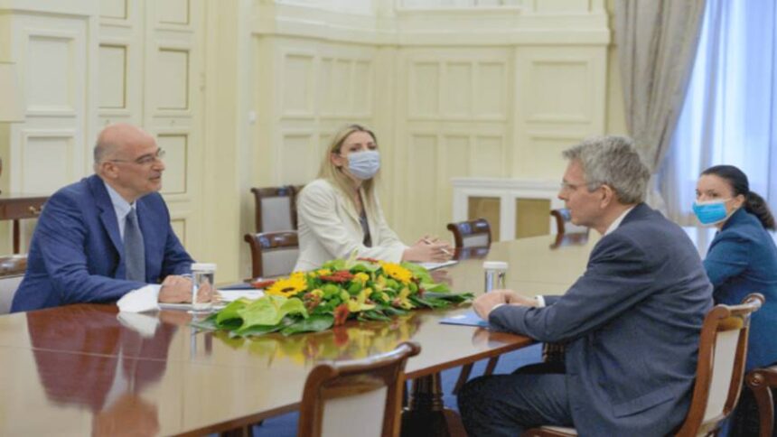 Συνάντηση με τον πρέσβη των ΗΠΑ στην Αθήνα Τζέφρι Πάιατ είχε χτές 24/06/2021 ο υπουργός Εξωτερικών Νίκος Δένδιας στο υπουργείο Εξωτερικών.