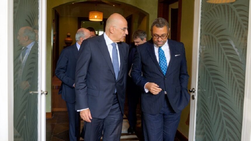 Εγκάρδια συνάντηση με τον υπουργό Εξωτερικών του Ηνωμένου Βασιλείου, Τζέιμς Κλέβερλι, είχε ο υπουργός Εξωτερικών Νίκος Δένδιας, στο περιθώριο του «Manama Dialogue» στη Μανάμα του Μπαχρέιν.