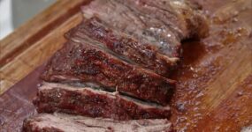 Πλένουμε και στεγνώνουμε το κρέας με χαρτί κουζίνας.