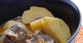 - 1 κιλό χοιρινό λαιμού κομμένο σε μπουκιές