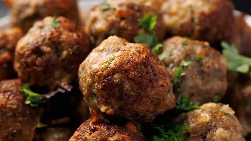 Ύστερα, πλάθουμε κεφτέδες σχετικά μεγάλους, με βάρος 30-35 γρ. ο καθένας, να έχουν ίδιο μέγεθος για να ψηθούν ομοιόμορφα.