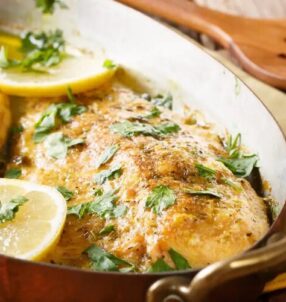 Ψάρι φέτα στον φούρνο με σάλτσα μουστάρδας και λεμονιού.