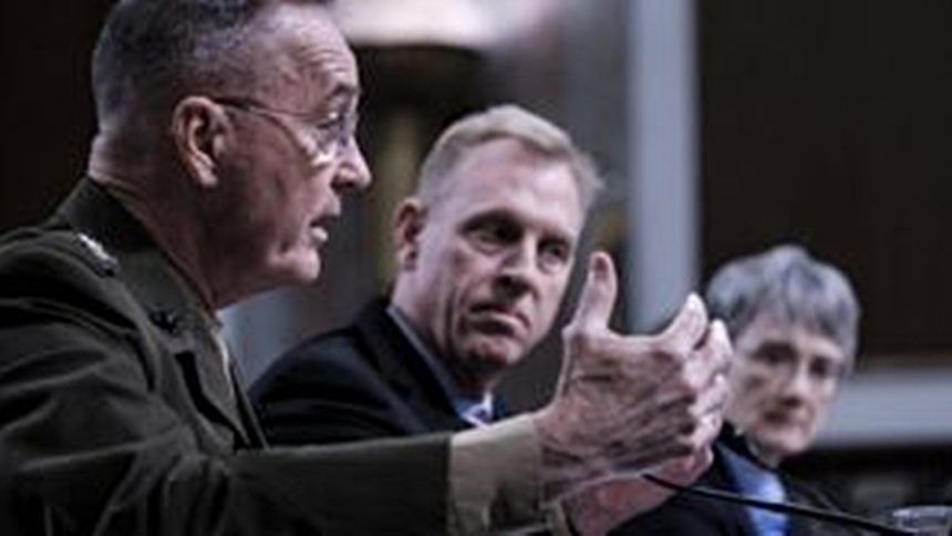 Photo: Ο επικεφαλής των αμερικανικών Ενόπλων Δυνάμεων Τζόζεφ Ντάνφορντ με τον αναπληρωτή υπουργό Άμυνας, Πάτρικ Σάναχαν, σε παλαιότερη κατάθεση τους στην Επιτροπή Ενόπλων Δυνάμεων της Γερουσίας. ΕPA, PETE MAROVICH